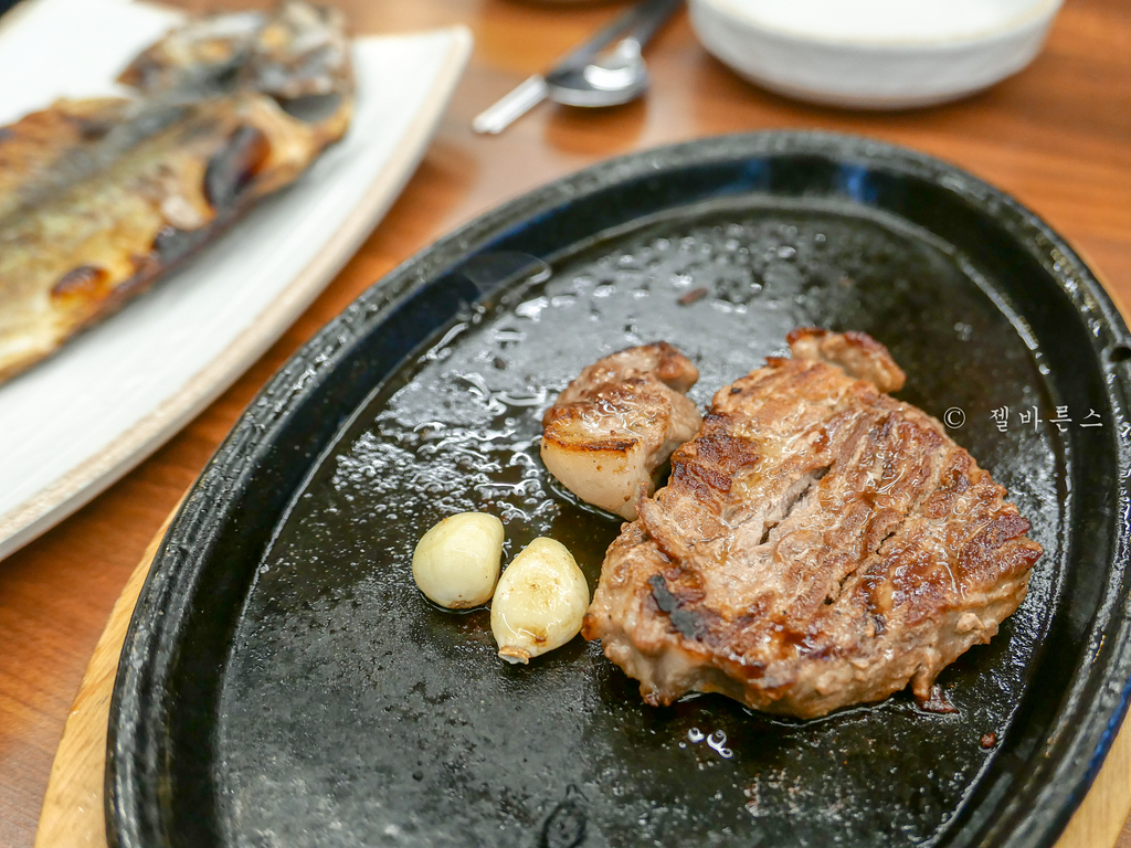 제주 애월 맛집은 흑돼지 스테이크를 기본찬으로 맛볼수있게 내주셨다. 제주도에 오면 꼭 먹게되는 음식중 하나라고 하는데 평소에 자주 맛볼수있는 삼겹살이나 목살이랑 달리 쫄깃하면서도 부드러운 맛을 동시에 느낄수가 있었다.