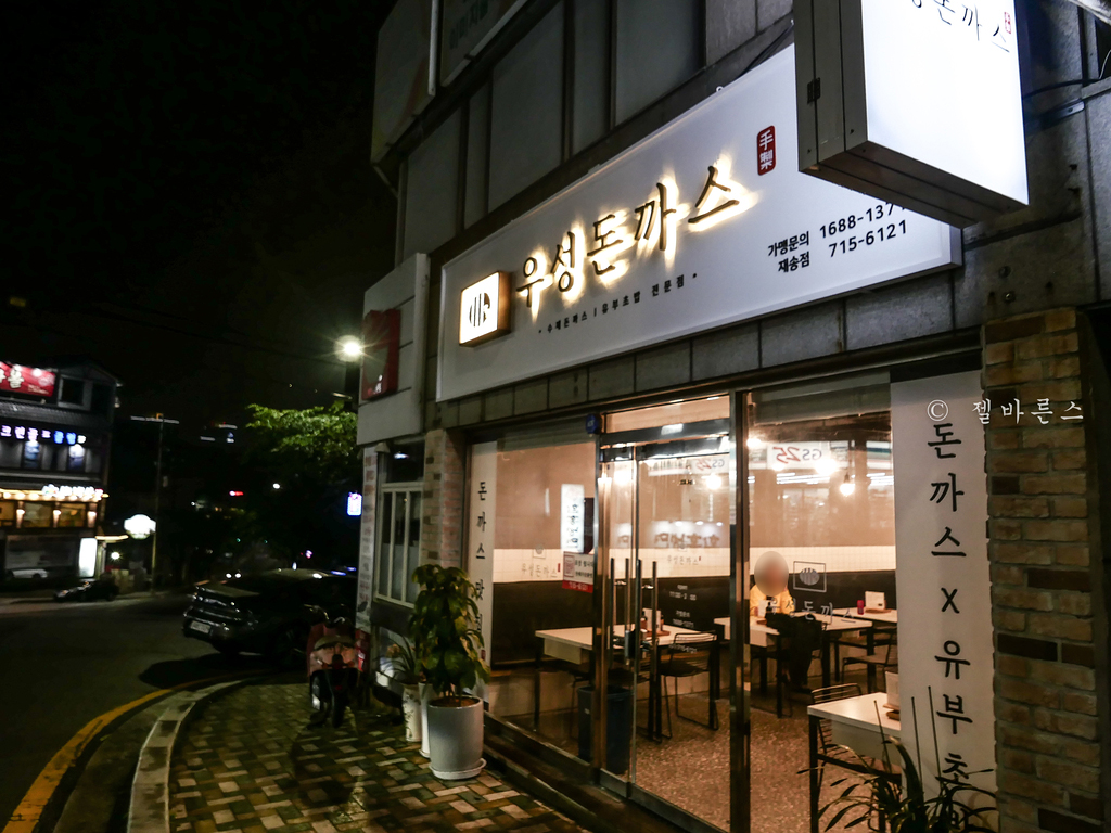늦은밤 일을 늦게 마치고는 식사를 할만한곳을 찾았다. 집근처에는 마땅히 없는것 같아서 재송동까지 나왔다가 지나가는길에 보이는 작은 돈까스집이 하나있었다. 나는 프렌차이즈 인줄 몰랐는데 다른곳에도 있다고 했다. 처음가보는곳이라 일단 한번 먹어보자고 했다. 주차장은 따로 없어서 길모퉁이 아무곳이나 그냥 주차를 했는데 따로 단속하는 시간은 아니었는지 모르겠지만 딱지는 날라오지 않았다.
