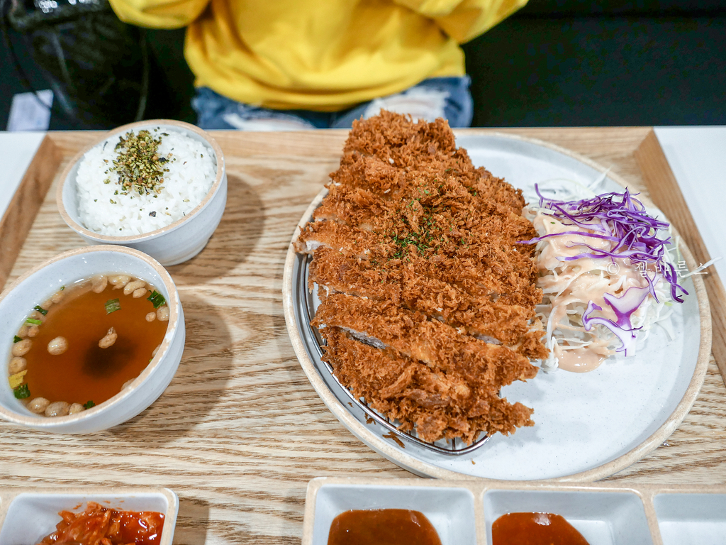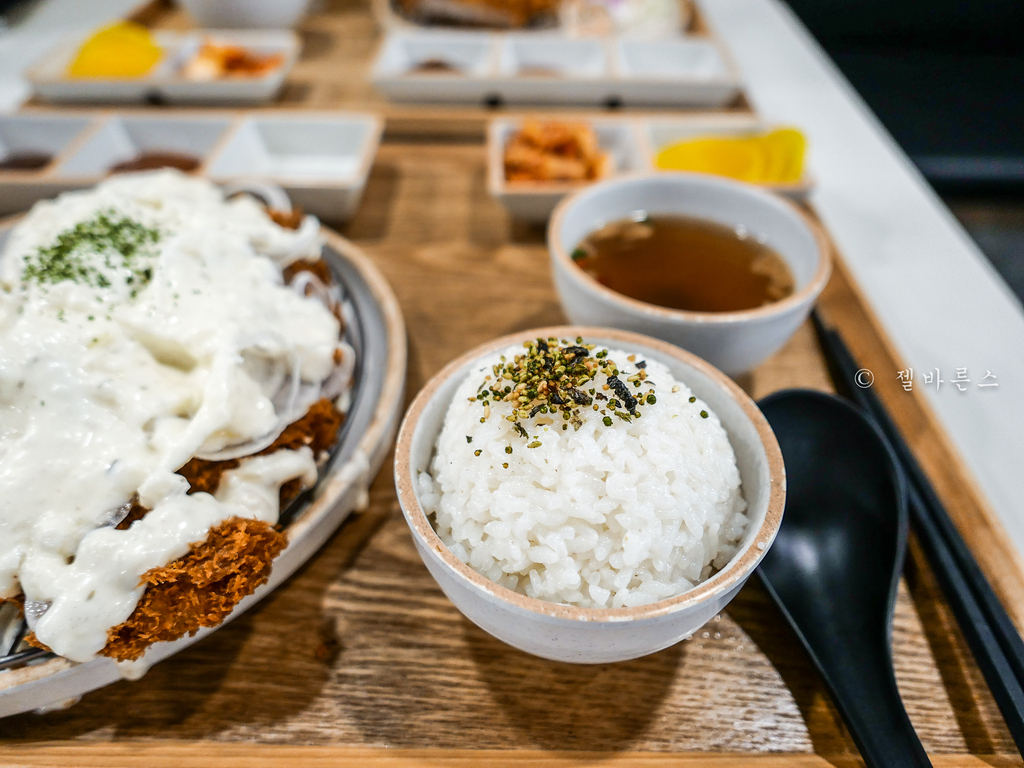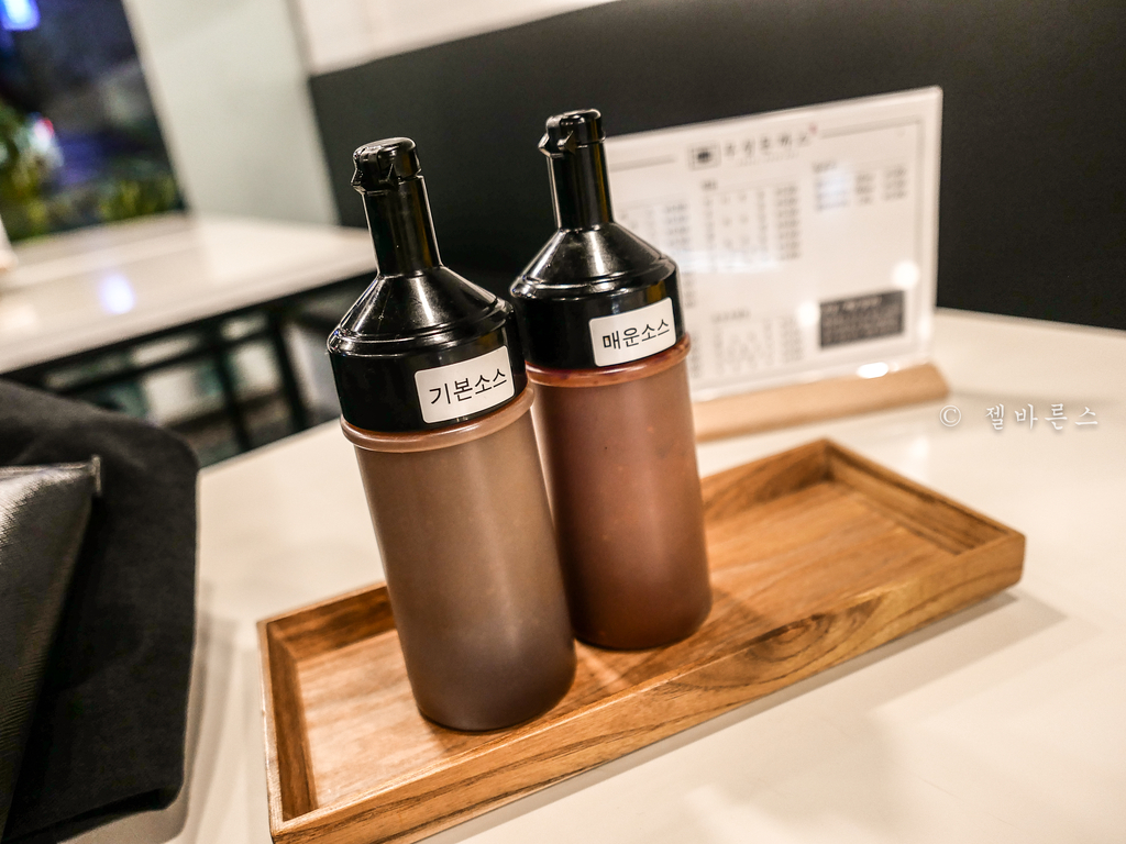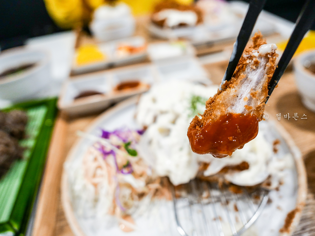 옛날 돈까스 처럼 소스를 뿌려서 먹는 타입이 아니라 테이블위에 올려져있는걸 따로 찍먹할수있도록 준비가 되어있다.
