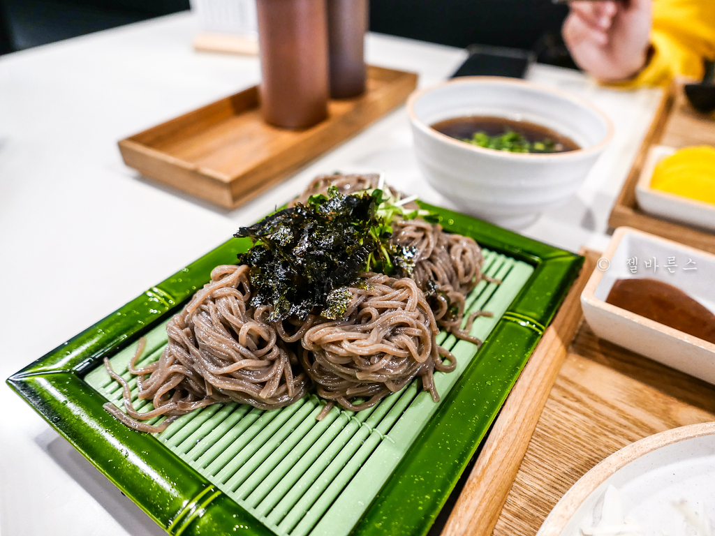 탄력적인 느낌으로 먹는 면발은 아니기 때문에 뚝뚝 끊어지는듯한 식감이지만 시원하게 담궈서 먹으니까 머릿속이 시원해지는 기분이다. 가쓰오부시 베이스라서 흔하게 예상할수있는 맛이면서도 무난한 맛이었다.