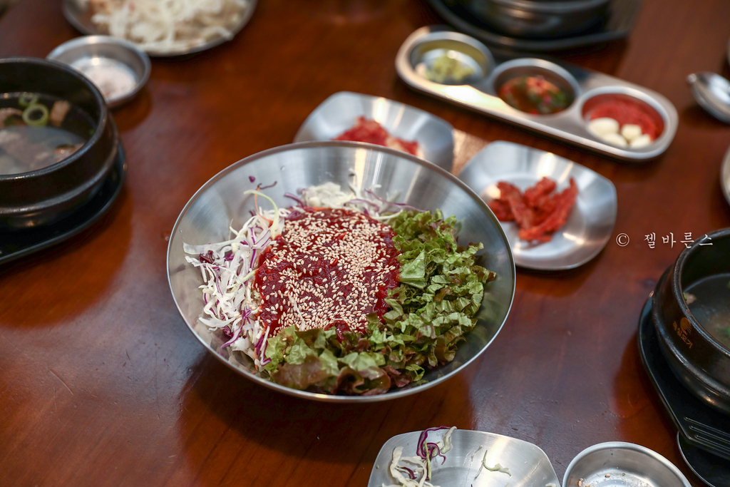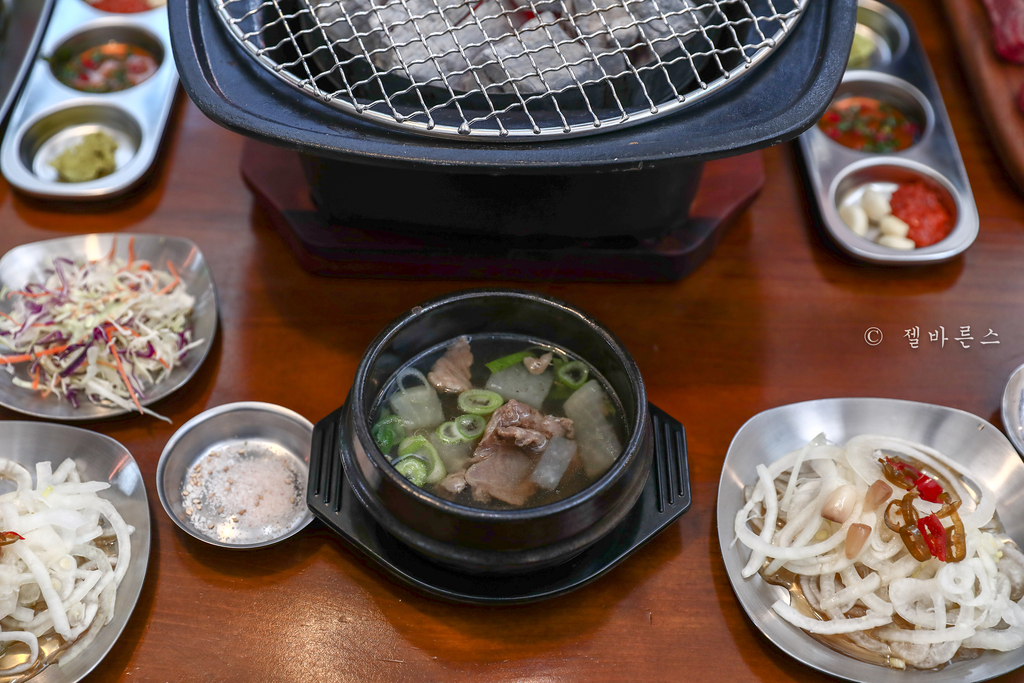 소고기 무우국이 기본으로 제공이 되는데 맑은 국이라서 깔끔하고 건더기가 풍성하게 들어있어서 이것만 먹어도 든든하게 식사를 하는 기분이 들것 같다.