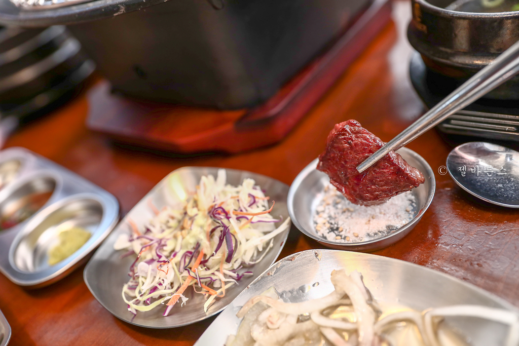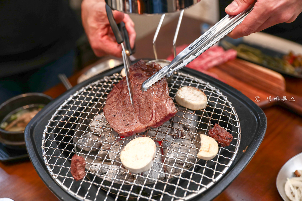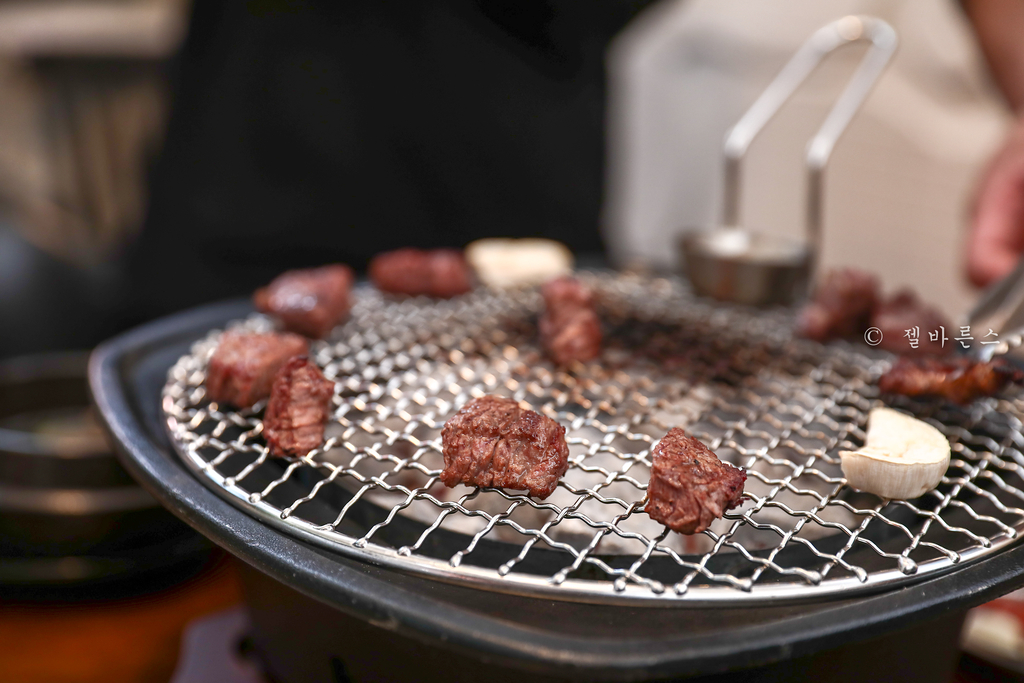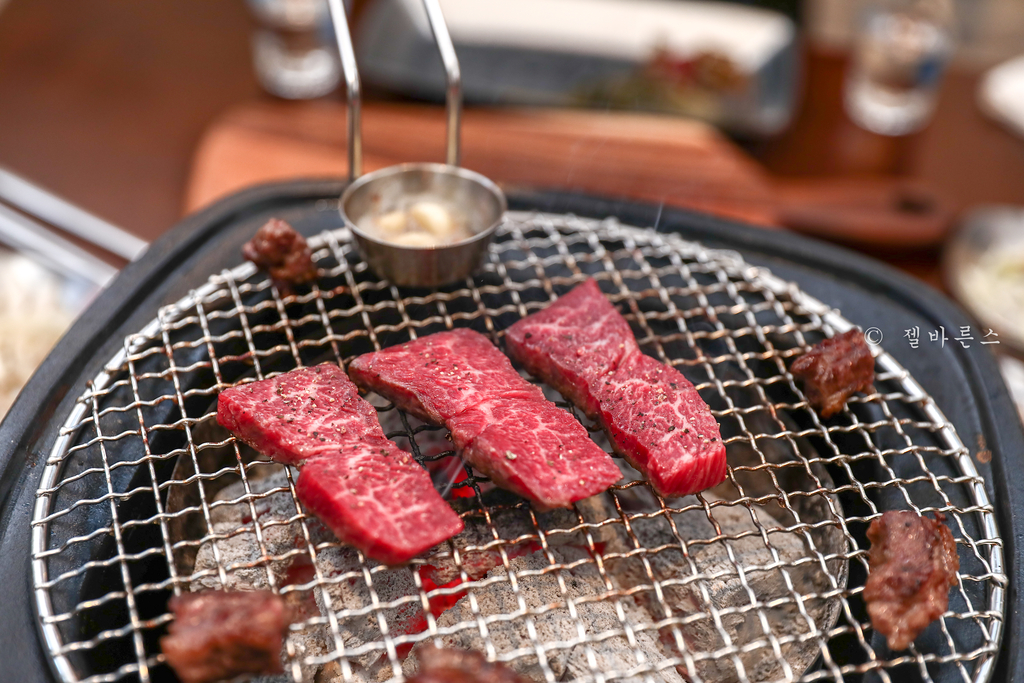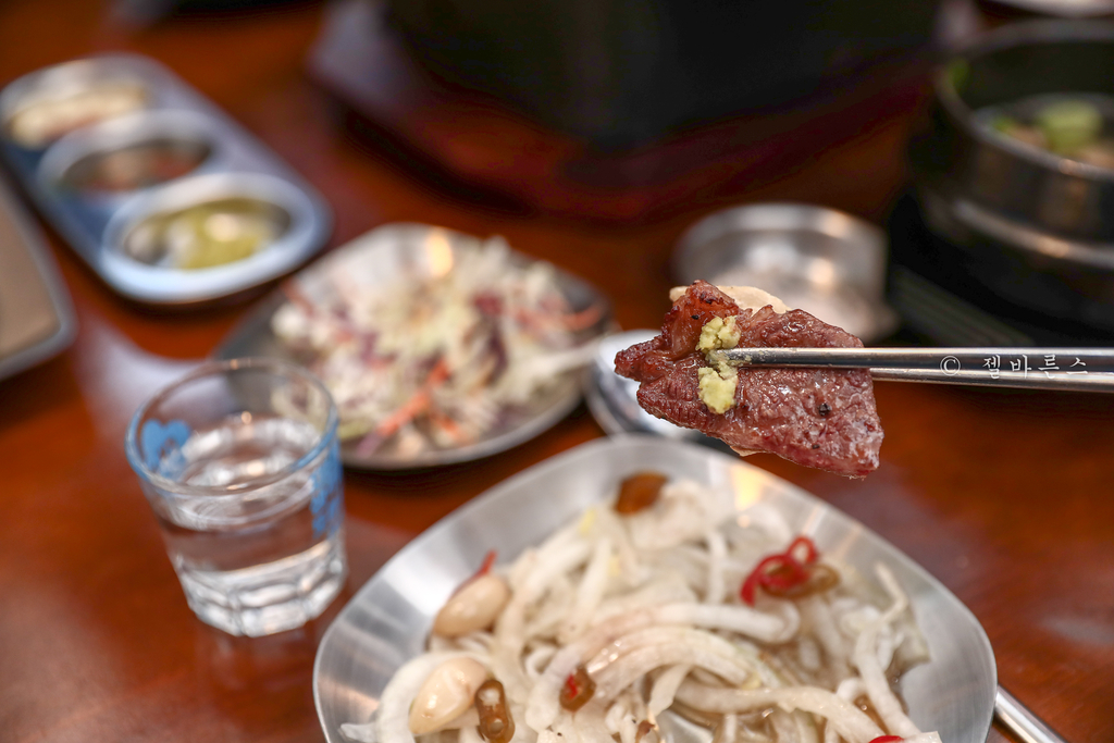 많이 뒤집지 않고 두세번만에 구워야 더욱 맛있는 한우를 맛볼수가 있다. 너무 태워도 안되기 때문에 돼지고기를 구울때보다는 신경을 좀 써야 되다보니 사장님께서 직접 고기를 구워주셨다. 원래는 이런 서비스는 제공이 되지 않지만 조금 한가한 시간대에 이용한다면 사장님이 직접 구워주시니 편하게 먹을수가 있겠다.
