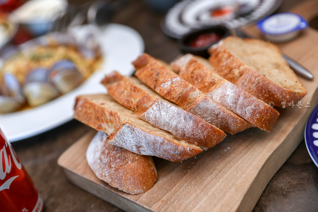 파스타를 비롯한 샐러드까지 여러가지 요리를 주문했고 잠시뒤에 식전빵이 나왔다. 광안리 해수욕장 맛집에서는 베이커리도 같이 운영이 되고 있는 만큼 빵도 수준급이다.