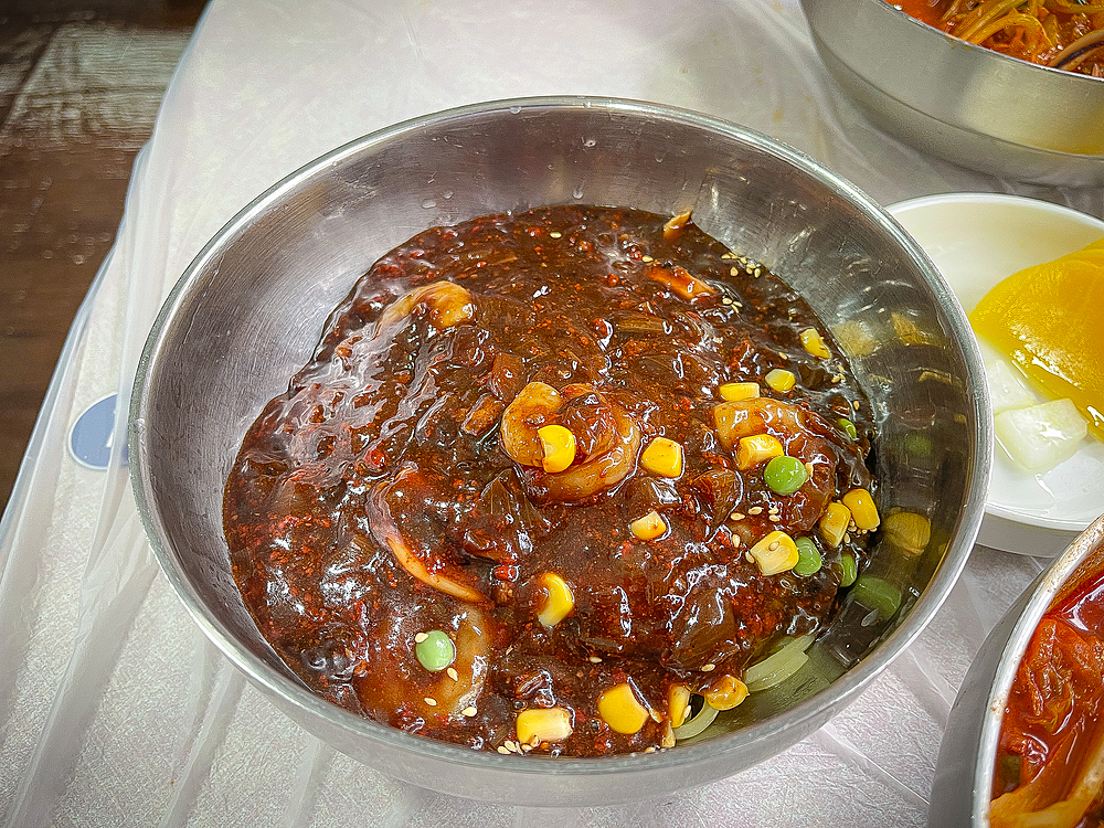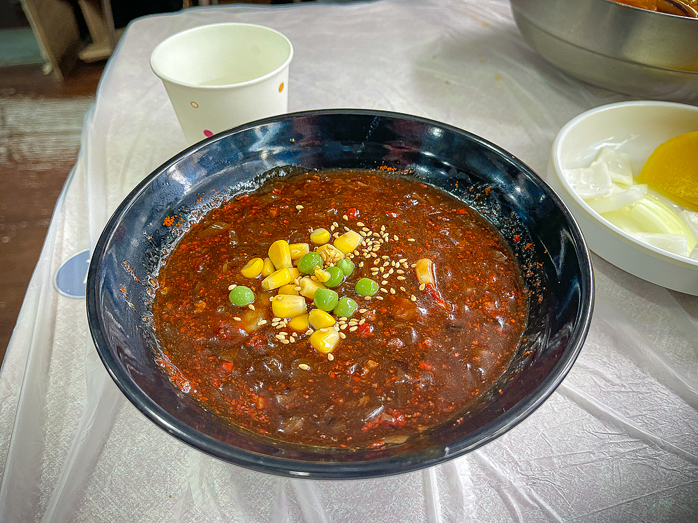 짜장면은 면따로 짜장따로! 단순히 시뻘겋게 고춧가루만 때려넣은것 같지만 그렇지 않았다.