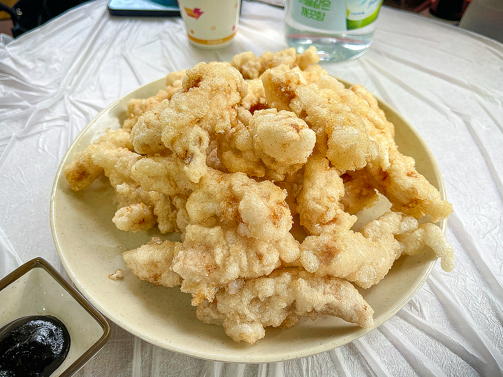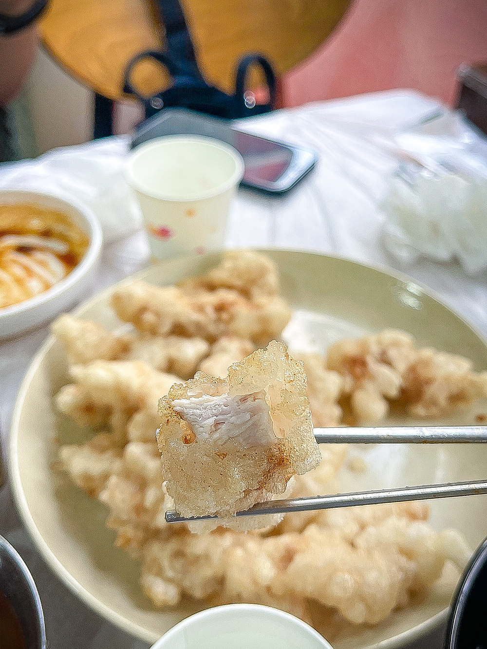 바삭바삭하면서도 쫀든쫀득한 식감이 아주 맛깔스럽다. 옛스러운 맛과 요즘 유행하는 찹쌀탕수육 스타일을 적당하게 믹스해놓은듯한 느낌이 든다.