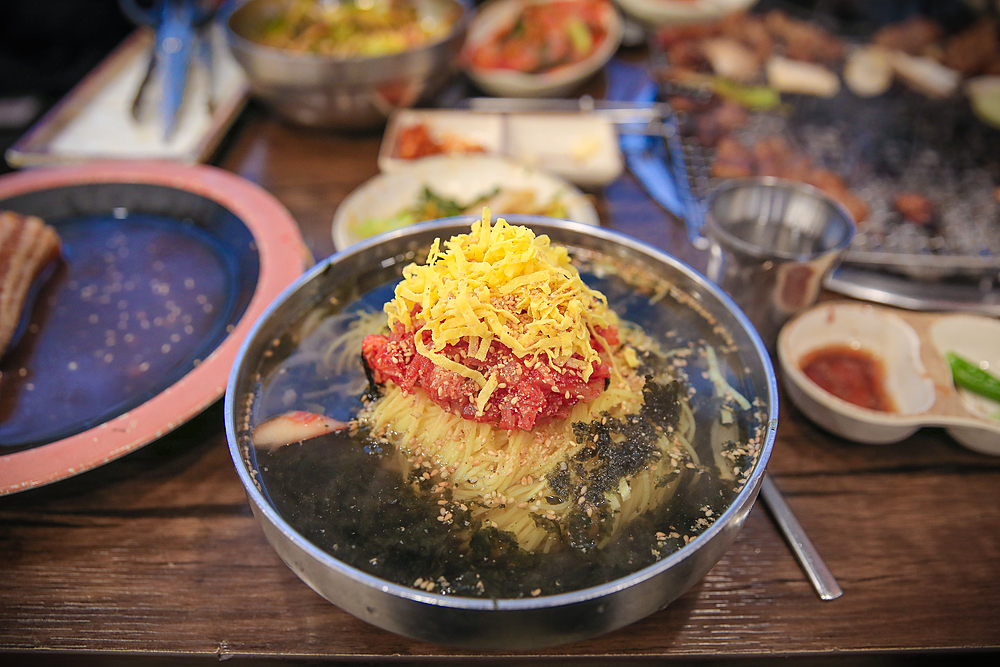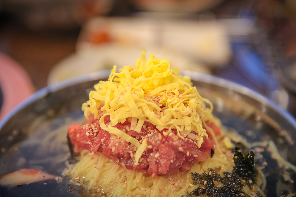 나는 오랜만에 따뜻한 온국수를 주문했다. 계란지단과 볶은김치가 넉넉하게 올려져있어서 국물에 슥슥 말아서 먹기 좋았다.