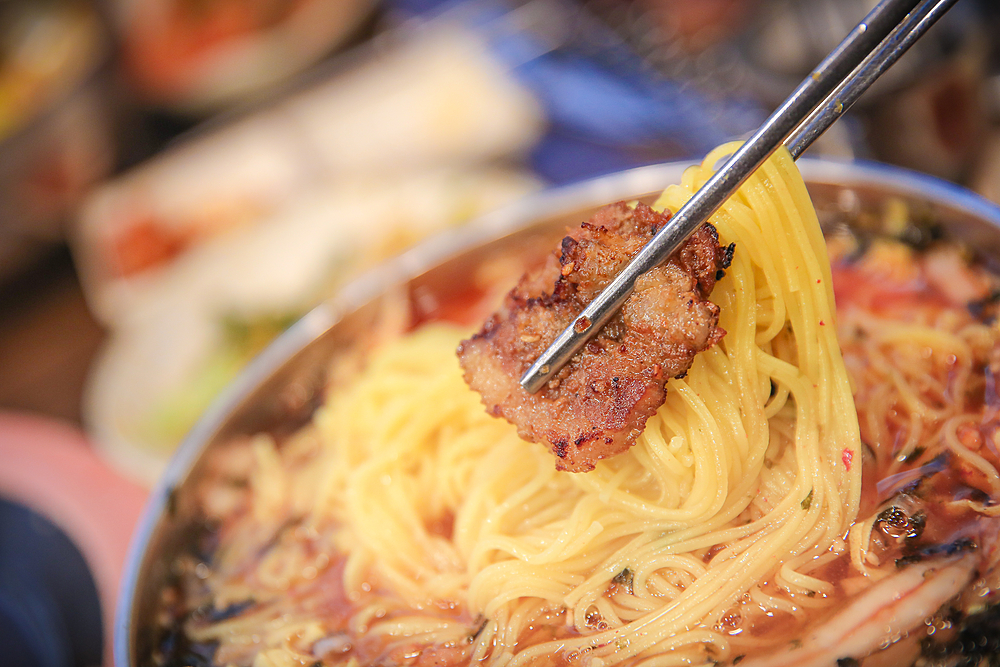 남아있는 돼지갈비랑 같이 먹으면 이만한 꿀조합이 또 없지를~🫠 국물도 맛깔스럽고 국수양도 많아서 진심 배부르게 잘 먹었다.