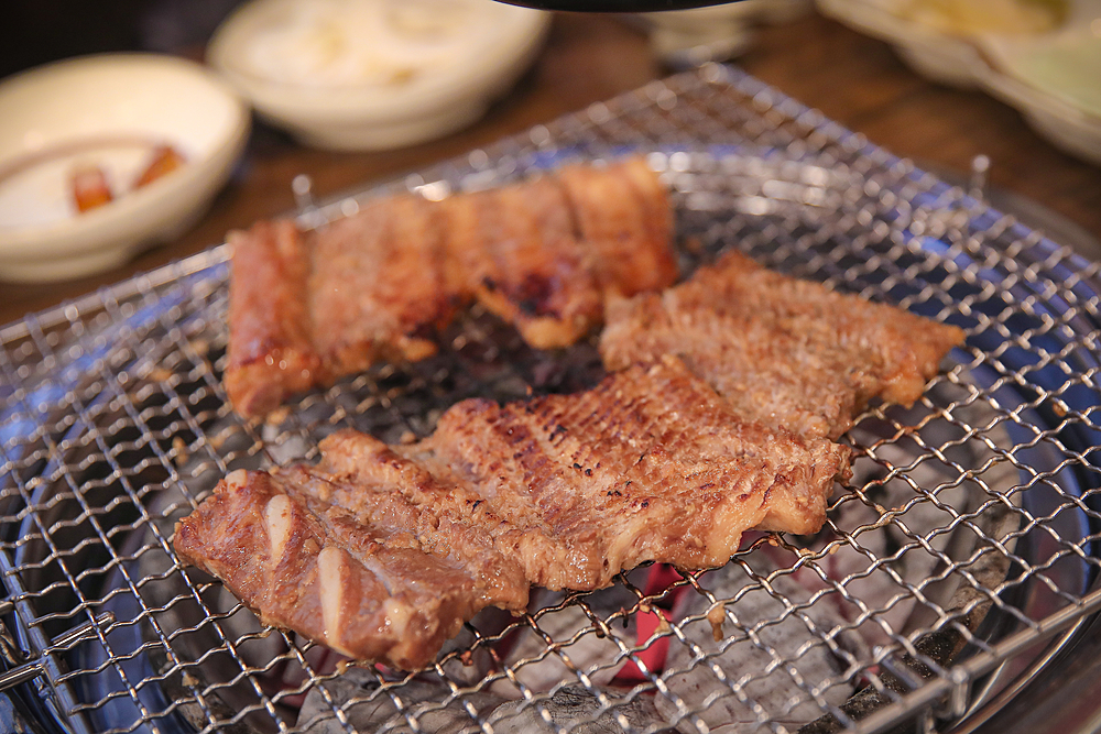 간판에서도 알수있었듯이 숯불갈비라서 직화로 바로 구워먹을수있었다. 화력도 좋지만 양념이라 조금만 방심해도 새까맣게 타버릴수있으니 굽는동안에는 잠시 집중을 하는게 좋을것 같았다.
