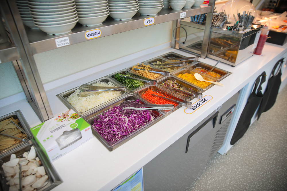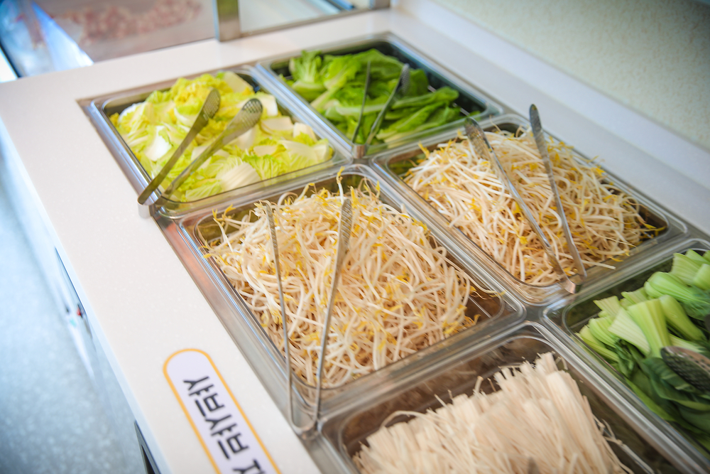 셀프바에는 다양한 야채들과 먹거리들이 준비되어있었다. 편백찜을 챙겨주시는것 이외에는 셀프로 챙겨오면 되니까 눈치볼 필요가 없을것 같다.