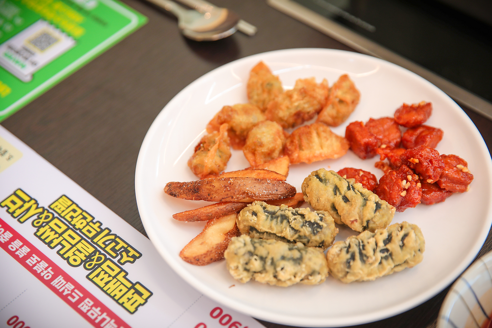 인스턴트식품이긴 하지만 퀄리티도 제법 괜찮아 보였다. 바삭바삭하게 잘 튀겨진 김말이,후렌치후라이,만두,닭강정~ 호불호 없이 먹을수있는것이라 더 좋은것 같다.
