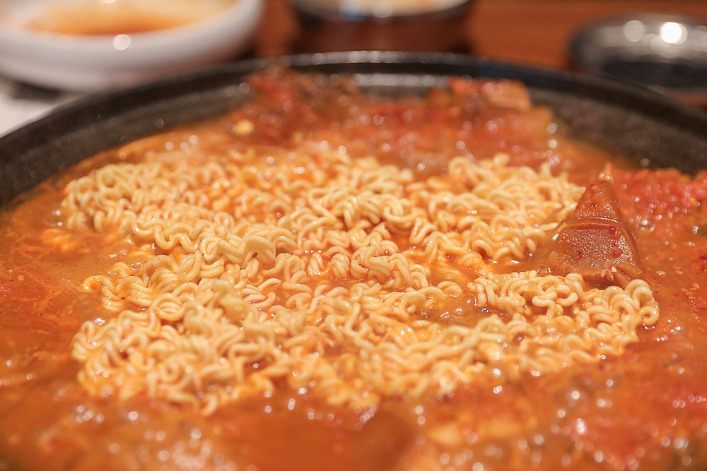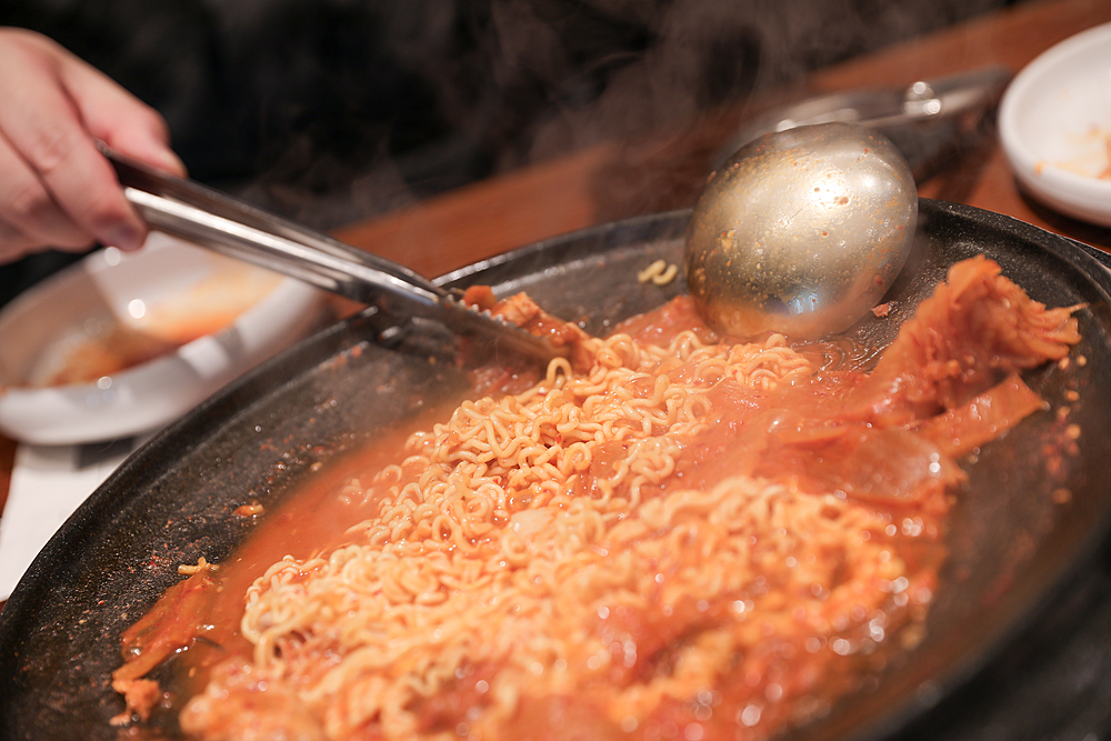 장유 율하 맛집은 라면사리도 덤으로 내주셨는데 찜이라고 하기엔 국물이 좀 많고 찌개라고 하기엔 국물이 약간 짜박한 느낌이라 그 애매한 경계에서 맛보는데 오히려 이렇게 먹으니 라면사리에 깊은맛이 베어들어서 더 맛있다.
