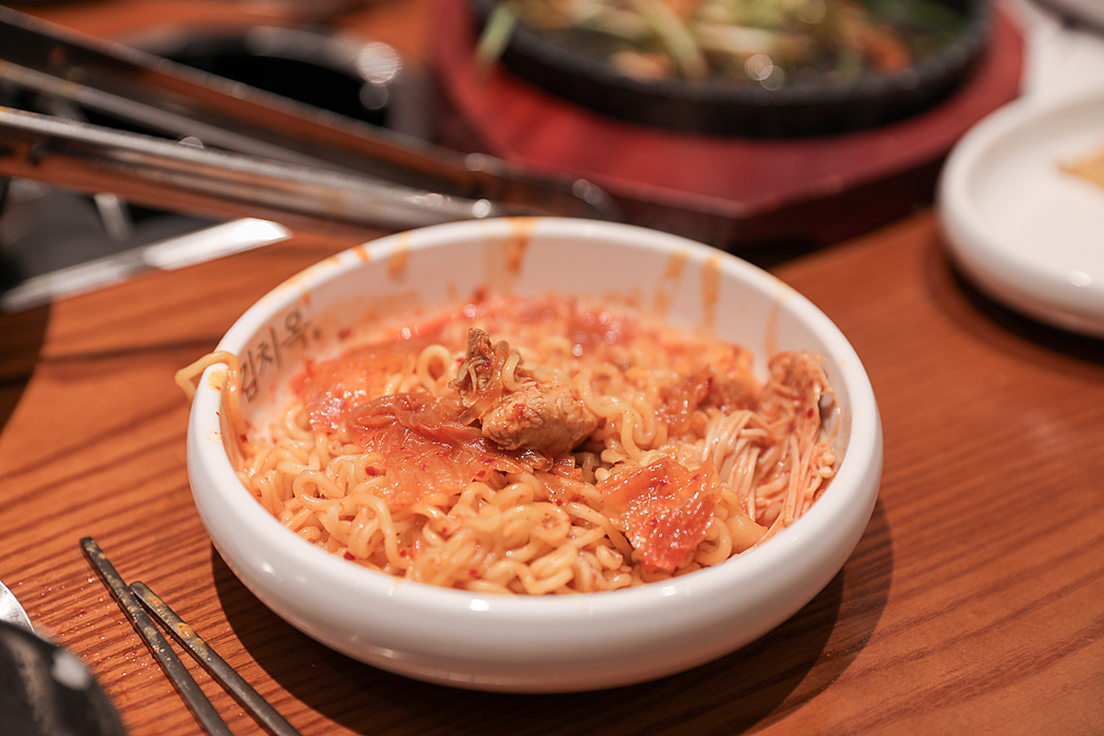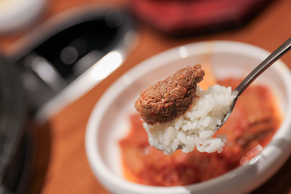 하얀 밥위에 올려져있는 김치+고기~🧡 참을수없는 조합인건 인정이다. 나도 어쩔수없는 토종 한국인이 맞나보다.